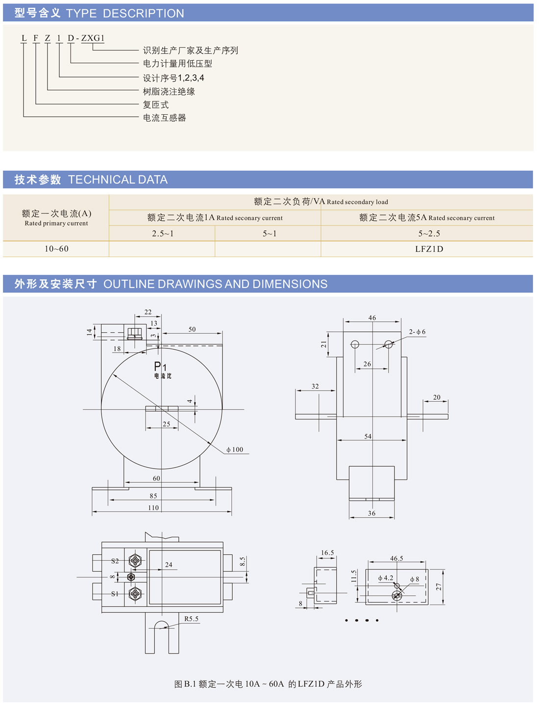 LFZ1D-ZXG1型复匝式抵押电流互感器